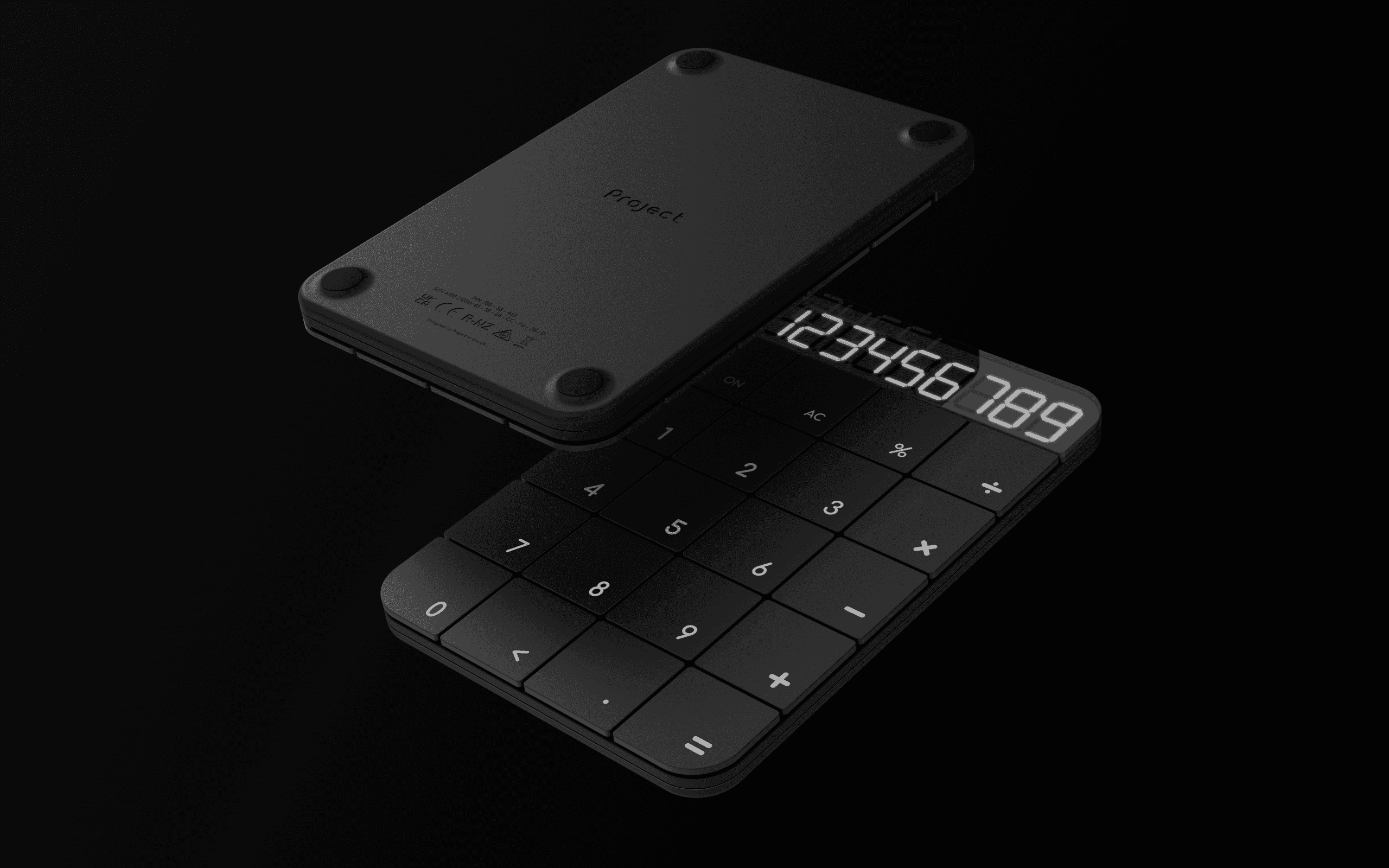 Calculators remain a staple in both homes and offices. At Project, we saw an opportunity to reimagine this familiar tool with a fresh perspective. Our design blends a sleek, minimal aesthetic with a touch of neo-retro flair, resulting in a product that is both visually appealing and functionally modern. Thoughtfully chosen materials and updated features make this calculator not only intuitive to use but also a joy to interact with daily.
