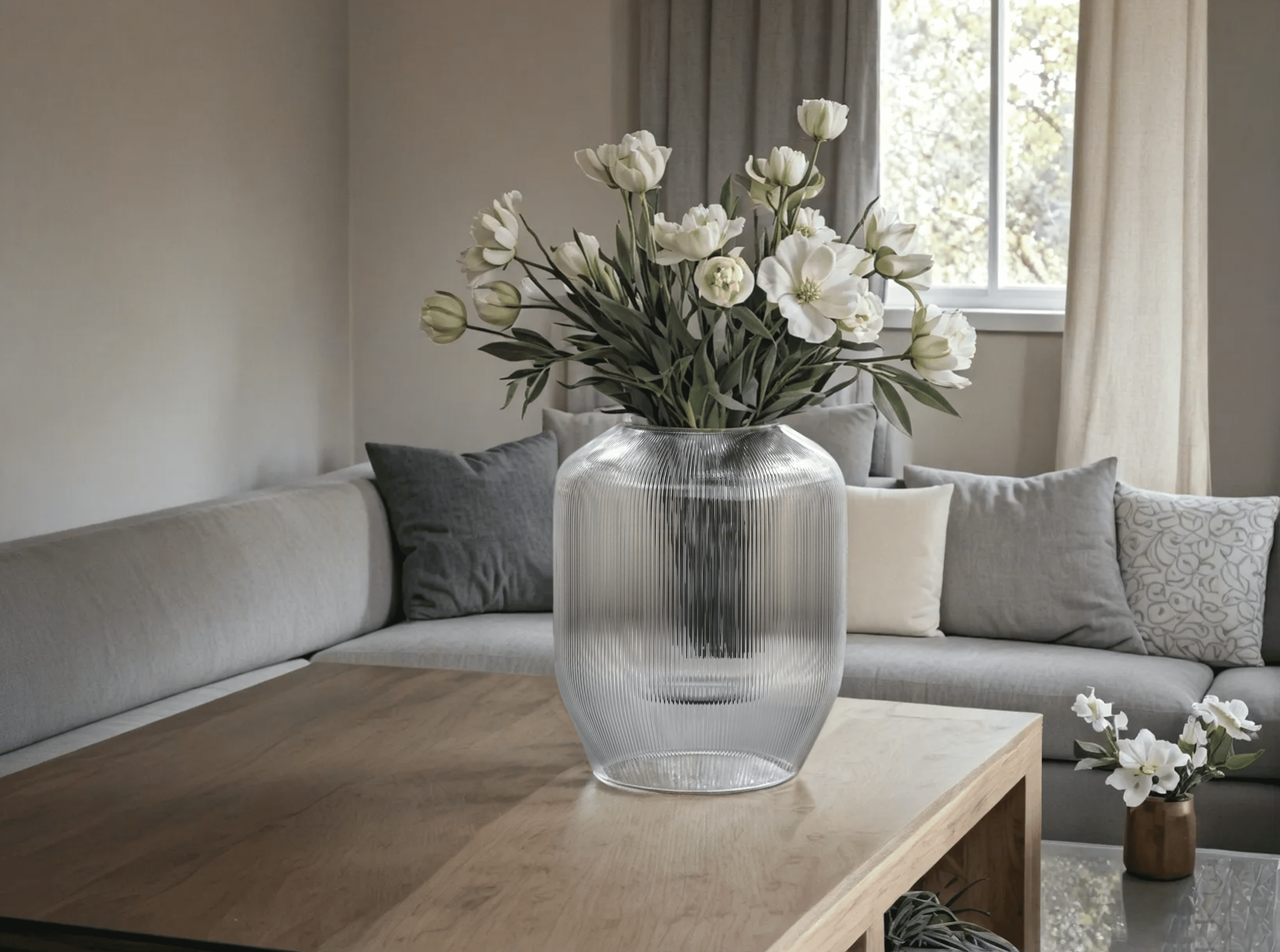 Its fluted texture adds a refined elegance while concealing the stems and structural elements of your bouquet.